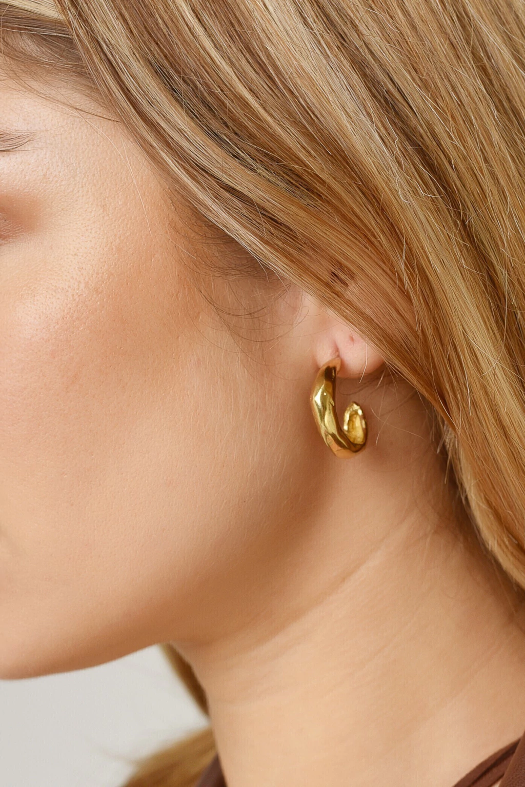Material: Bronce trabajado a mano con pasante de plata 925. COLOR DORADO. Par de aros.